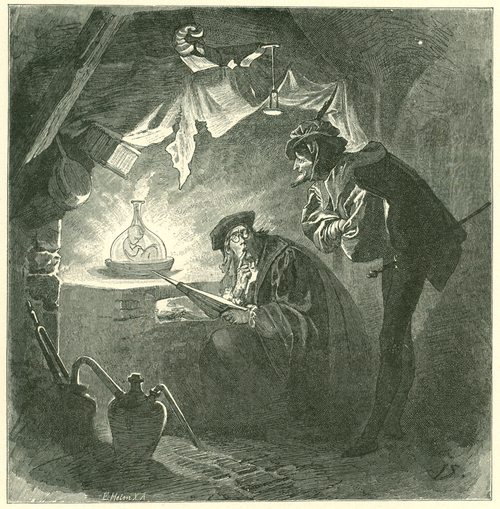 - Quelle: Faust. Zweiter Teil, Zweiter Akt, Laboratorium, Illustration zu Johann Wolfgang von Goethe